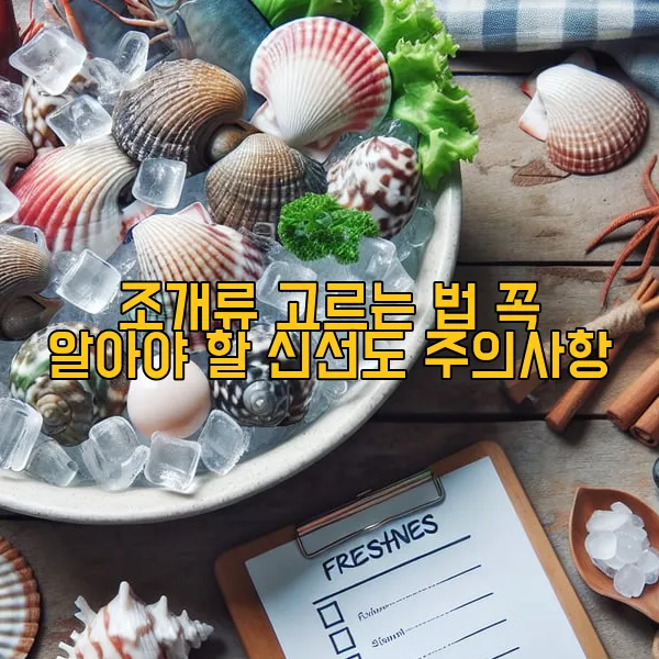 조개류는 그 신선도가 요리의 맛을 좌우하는 중요한 요소입니다. 위의 방법과 체크리스트를 활용하여 신선한 조개를 선택하고, 올바르게 보관하여 건강한 식사를 즐기시기 바랍니다. 신선한 조개와 함께 바다의 풍미를 만끽해 보세요!